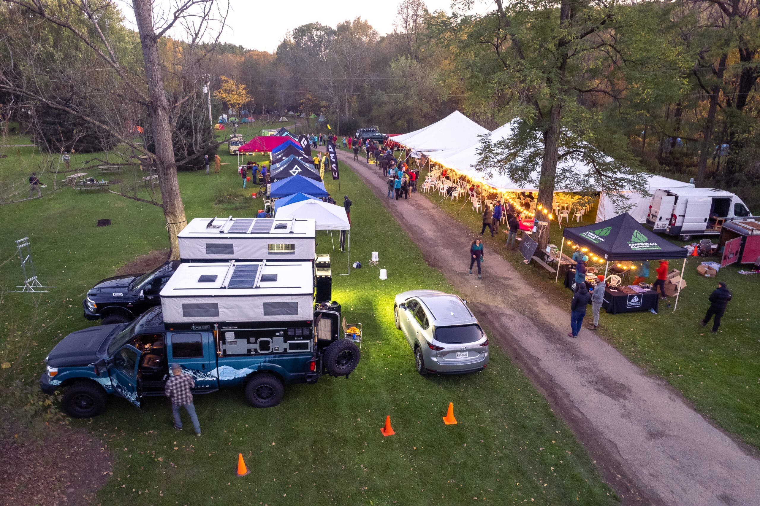 After a long and beautiful day of climbing in the park among the changing autumn leaves, climbers headed back to the campground for some well-earned beers. This tight-knit community of stoked climbers spent the evening rosy-cheeked in the cold, laughing as they cheered and taunted friends to try one of the many festival games (one such game had climbers coiling a rope as fast as they could over a helmet that had a 2-foot pole attached to the top). Once night had fully set in the party heated up with a DJ who kept the energy going until the early hours of the morning.