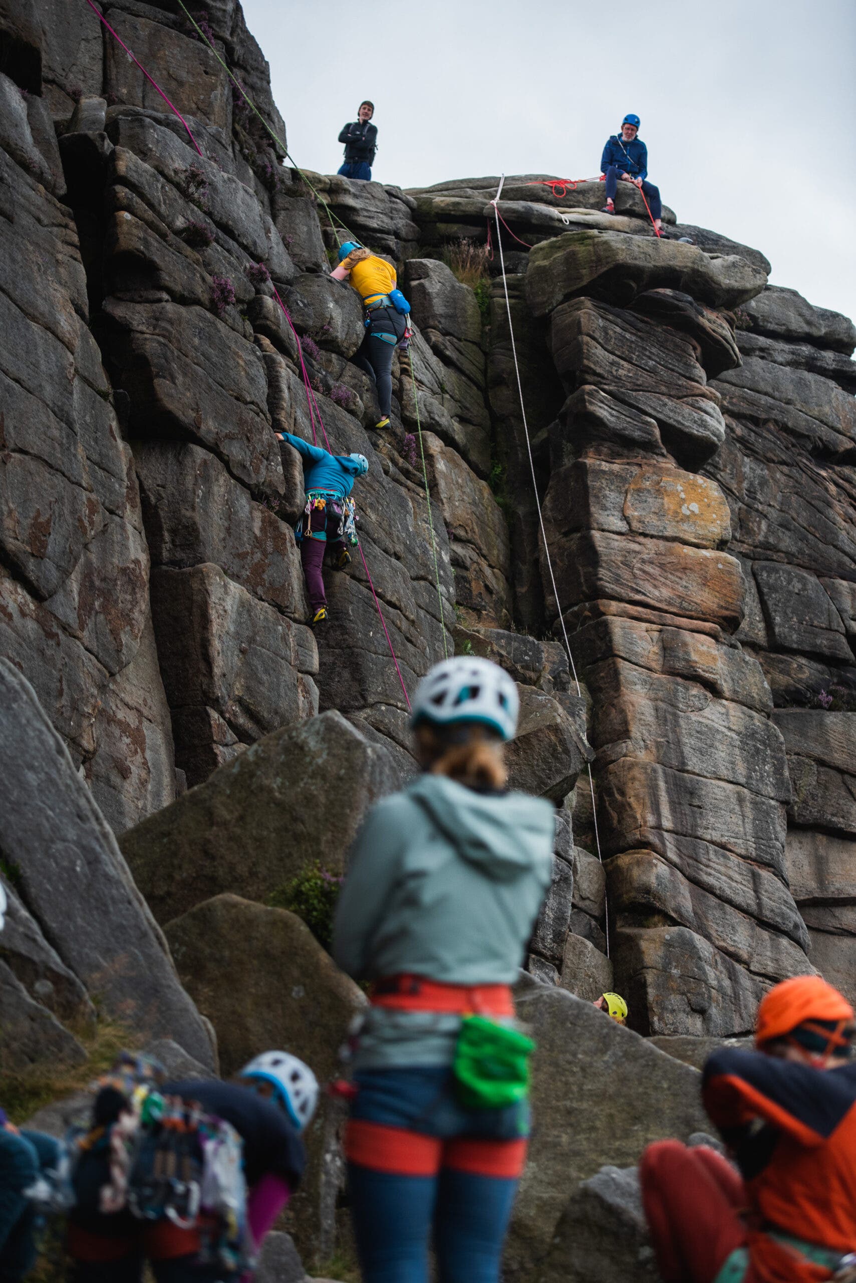 From August 6-8, the gritstone outcrops of the English Peak District once again became the spiritual home of the Women’s Trad Festival. Now in its sixth year, the festival welcomed all marginalized and non-binary genders, ages, and levels of ability, creating a safe space for climbers to improve their skills and knowledge on the rock.
