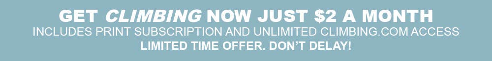 This article is free. Sign up with a Climbing membership, now just $2 a month for a limited time, and you get unlimited access to thousands of stories and articles by world-class authors on climbing.com plus a print subscription to Climbing and our annual coffee-table edition of Ascent. Please join the Climbing team today.