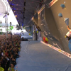 Qualifiers take place Friday, followed by Sem-Finals saturday, and then a unique Finals round for the top six competitors. The finalists first climb on two boulders, one after another. Then the top three advance to the next round, in which they compete on a third boulder problem to reach the Superfinal. In the Superfinal, the top two compete in direct head-to-head on a “super boulder.” They climb simultaneously on identical problems on two sides of the same boulder. As it is custom when bouldering outdoors on natural rock, the athletes must stand on top of the boulder block and touch a buzzer, which will determine the winner. Although the climbers cannot see each other, the beat of the music and the cheers of the crowd will reflect what is happening on the other side. The first person to stand on top of the boulder and hit the buzzer person is named the Adidas Rockstar 2018 and wins 4,000 Euros (~$4,700 USD).