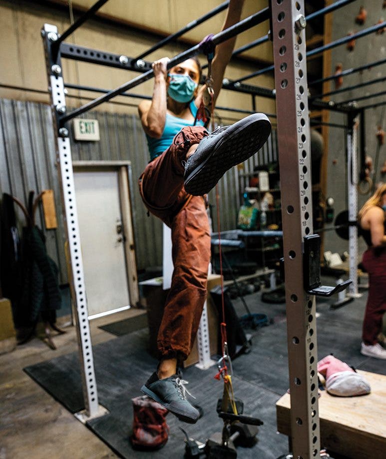 Other transplants have formed a “girls’ house,” as it was referred to. Cloe Coscoy, Sienna Kopf, Quinn Mason and Thea Wulff: all 18 or 19, all strong, badass climbers. Coscoy was the 2019 Youth Pan American Bouldering Champion. Kopf is a true all-arounder, having competed on the US team on the World Cup circuit for all three disciplines in 2019. Mason is a five-time youth USA team member, and Wulff recently qualified for the 2021 Salt Lake City Bouldering World Cups. Watching these four ladies, it’s clear they’re all best friends. They arrive, do their exercises, joke, laugh and leave together. Their camaraderie juxtaposed with casual one-arm workouts: an authentic display of femininity at its finest.Same for Sean Bailey, 24. Bailey nearly qualified for the Olympics in 2019, after placing ninth in the Toulouse Olympic Qualifier—one spot behind Coleman, one spot out of the invitational bracket. Bailey took the ensuing year to truly make a name for himself outside, putting down two V16s, Box Therapy, in Rocky Mountain National Park, Colorado, and Grand Illusion, in Little Cottonwood Canyon, Utah, last November. Originally from Shoreline, Washington, Bailey has joined the Salt Lake City movement.