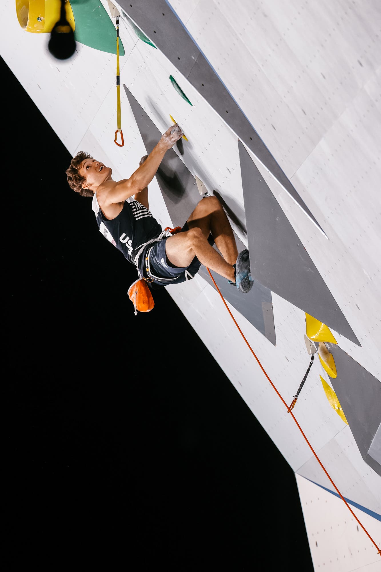Team USA Head Coach, Josh Larson, arrives for the men’s qualifier. Photo: Jon Glassberg / Jess Talley / Louder Than 11Jakob Schubert, of Austria, placed 1st in Lead. Photo: Jon Glassberg / Jess Talley / Louder Than 11