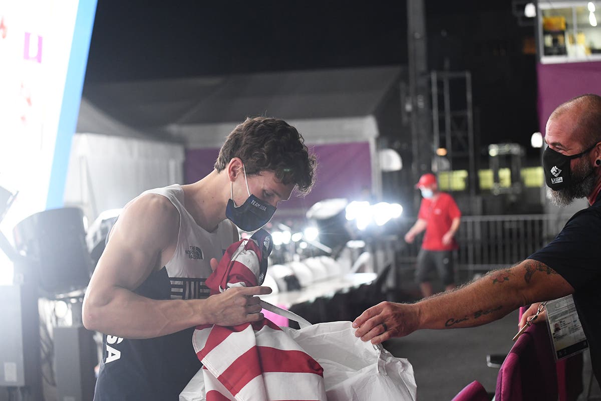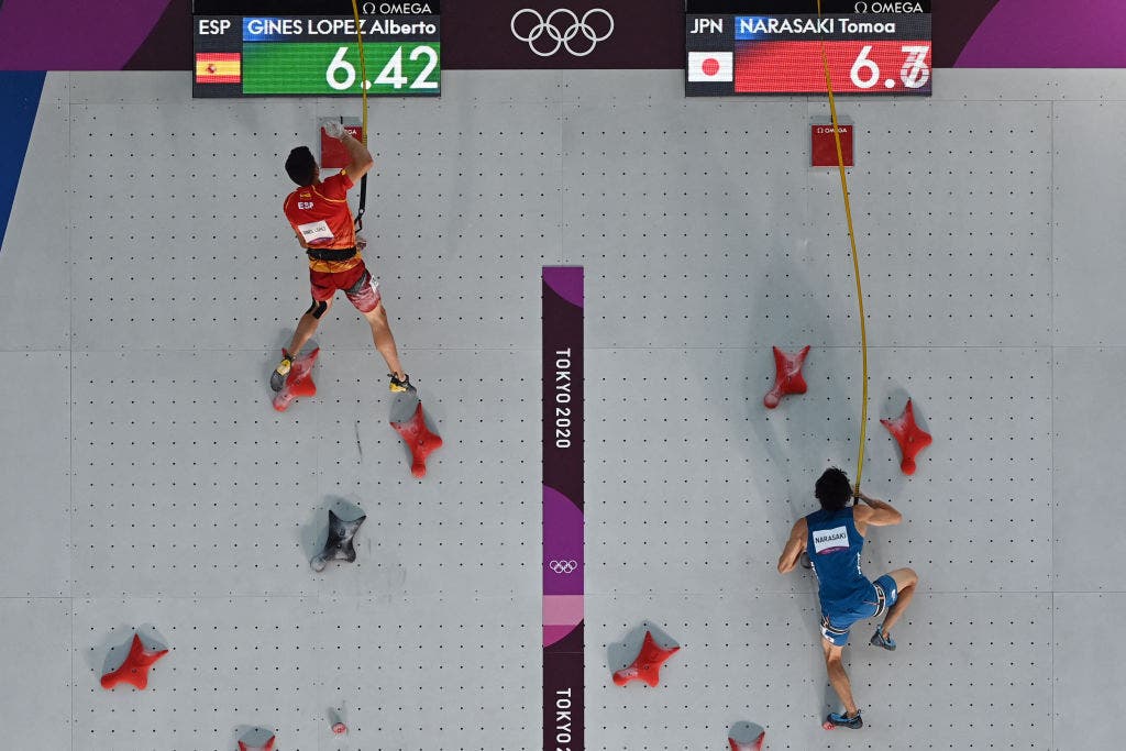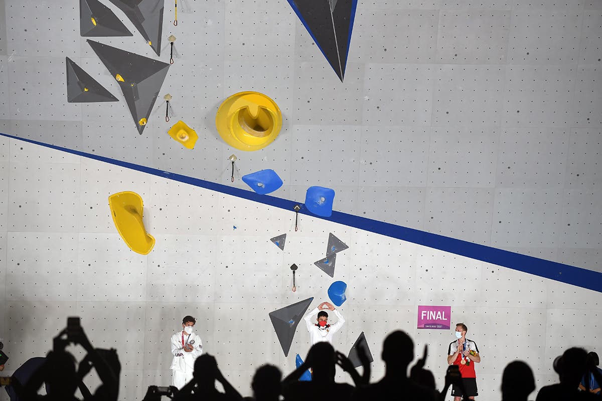 Jakob Schubert of Austria elated after being the only competitor to top the lead wall in the Olympic sport-climbing finals. His success kicked Adam Ondra out of the medals—until that point Ondra had the gold, but when Schubert passed him in Lead, Ondra went from first to second in Lead, doubling his score. Photo: Jess Talley, Jon Glassberg/Louder Than 11Alberto Gines Lopez led going into the Boulder, but placed last. Due to the oddity of the scoring system where the results from each event are multiplied, he still had a low score (1 x 7 = 7) going into lead, and the climber with the lowest score would win. Photo: Ryu VoelkelColin Duffy of the U.S. chalks up his first Olympics. He didn’t medal, but the 17 year old has time on his side, and with Speed split off from Sport Climbing as its own event in the 2024 Paris games, he could do well there. Photo: Ryu VoelkelNarasaki Tomoa (R) is beaten by Lopez in the Speed finals. Tomoa would finish Speed in second place, but a sixth place in Lead put him out of the medals. Lopez would finish Speed in first—a shock since Speed isn’t his specialty—last in Boulder and fourth in Lead, but his win in Speed gave him a combined score with a multiple of one, and the Olympic gold. Photo: MOHD RASFAN/AFP via Getty ImagesMiho Nonaka sets up for a big move during Boulder finals. Photo: Ryu VoelkelAnouck Jaubert of France after narrowly missing the win in speed. She raced Aleksandra Miroslaw of Poland, who set a new women’s world record time of 6.84 seconds (is there another Olympic event where you can set a world record and not medal?). Photo: Ryu VoelkelSeo Chae-hyun of South Korea climbed hard, placing second in Lead, seventh in Boulder and eighth in Speed. Her combined score put he in last place, but just 17 years old, she has many more Olympics ahead of her. Photo: Ryu VoelkelAkiyo Noguchi of Japan hits the pads during Boulder finals. Four was her number that night. She placed fourth in Speed, fourth in Boulder and fourth in Lead … and ended up third overall, taking bronze. Photo: Ryu VoelkelSchubert not quite happy with his fifth place finish in Boulder. To this point he was in last place with 35 points, but his win in Lead would flip a lot of numbers, earning him the bronze. Photo: Ryu VoelkelJaubert hands it to Garnbret for her win in Boulder. Photo: Ryu VoelkelNathaniel Coleman during his excellent Boulder performance where he’d take first place, ultimately earning him the silver medal. Photo: Ryu Voelkel