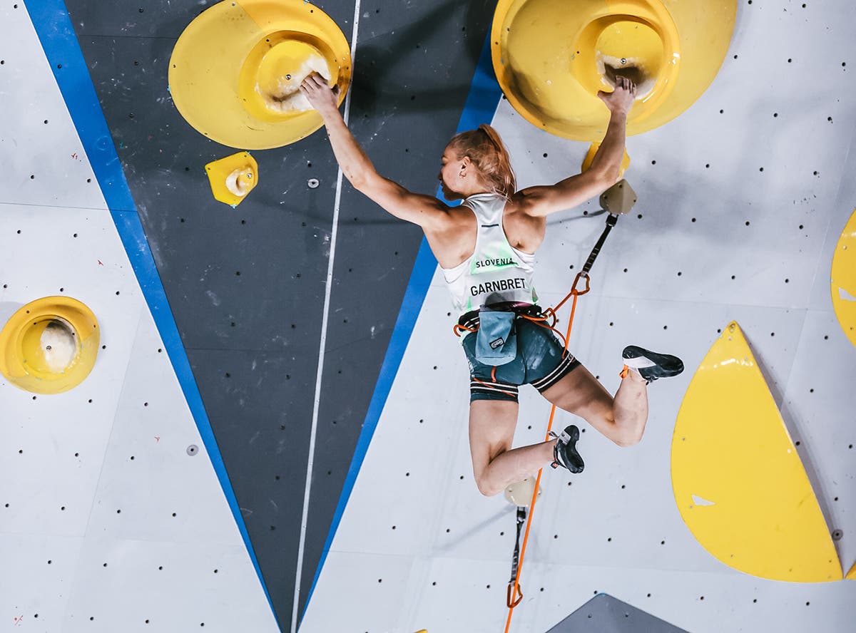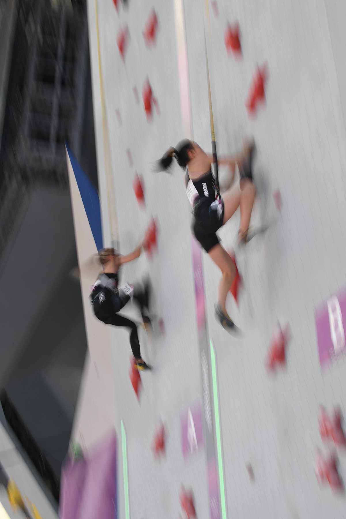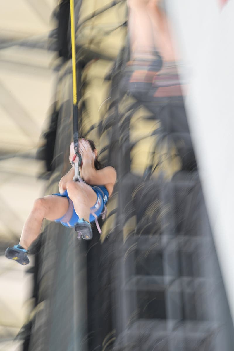Sport Climbing debuted August 3-6 on a special-built EntrePrises wall at the Aomi Urban Sports Park, a temporary venue near Tokyo Bay. Photo: Ryu VoelkelJessica Pilz of Austria winds up on problem two during the Boulder finals. This tricky problem, meant to begin with the climber facing out, thwarted everyone except for Janja Garnbret of Slovenia. Pilz would read the problem correctly, attempting it by facing out, but didn’t top. She would place fifth in Boulder, seventh in Speed and third in Lead to finish seventh overall. Photo: Ryu VoelkelNarasaki Tomoa of Japan after failing to complete problem three, a tricky series of moves on volumes that saw no tops, leaving some to speculate whether it was too difficult. Photo: Ryu VoelkelA scraped-up Brooke Rabotou, heels over head, after an excellent performance in Boulder, where she finished in second place. Photo: Ryu VoelkelMickael Mawem of France, launches off the Lead wall during finals. After Boulder finals he was in a three-way tie for first with Coleman and Tomoa, but his seventh-place (last) finish in Lead would keep him out of the medals. Photo: Ryu VoelkelAdam Ondra of the Czech Republic before his final run on the Speed wall. Despite a disdain for the discipline, Ondra trained for Speed and blazed up the wall and into fourth place. Perhaps ironically, he finished poorly in Boulder, coming away with a sixth-place position in a discipline he typically excels in. In qualifiers two days before he had flashed all three Boulder problems, a perfect display. Photo: Ryu VoelkelSeo Chae-hyun of South Korea races Speed specialist Aleksandra Miroslaw of Poland. Miroslaw would win the event, and in her final heat set a new women’s speed world record. Photo: Ryu VoelkelJanja Garnbret of Slovenia powers through the big footless moves during Lead finals. She would win Lead, and with a first-place finish in Boulder and a fifth in Speed, her score of five easily earned her Olympic gold.