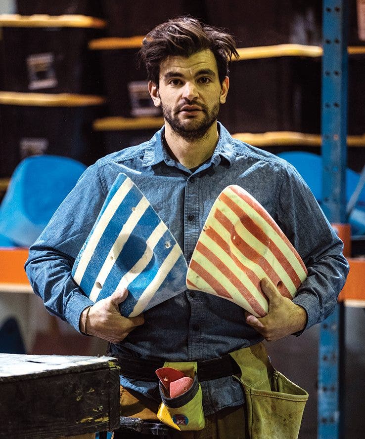 With no climbing gyms back home in Worcester, Josh decided to set his first problem in the attic with a Metolius starter kit. But after a few weeks, his parents revoked those privileges. “They didn’t want me in the attic anymore because I was breaking sheetrock over the kitchen ceiling,” Josh says, “so I started setting at the local YMCA on a top-rope wall next to the racquetball courts.”