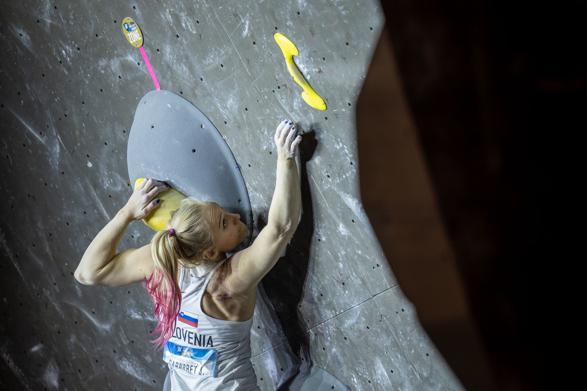 American Natalia Grossman has been on a roll since winning every competition on the 2019 National Cup Series. Although she’s not an Olympian, fans should consider Grossman to be in the highest echelon of American competition climbers, and an eventual bronze medal at Meiringen underscored that. (Photo: Courtesy of IFSC’s Flickr page)