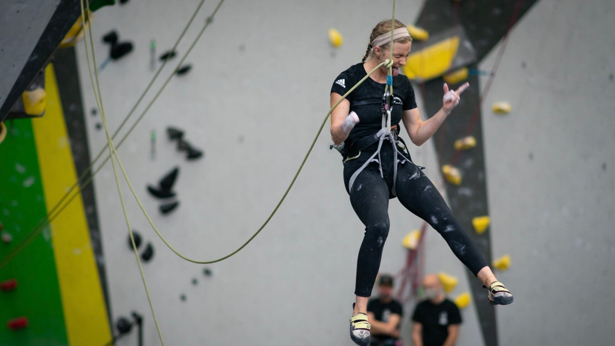 Amy Mullins coats up, on her way to winning Women’s B3. (Photo: Bree Robles/USA Climbing)