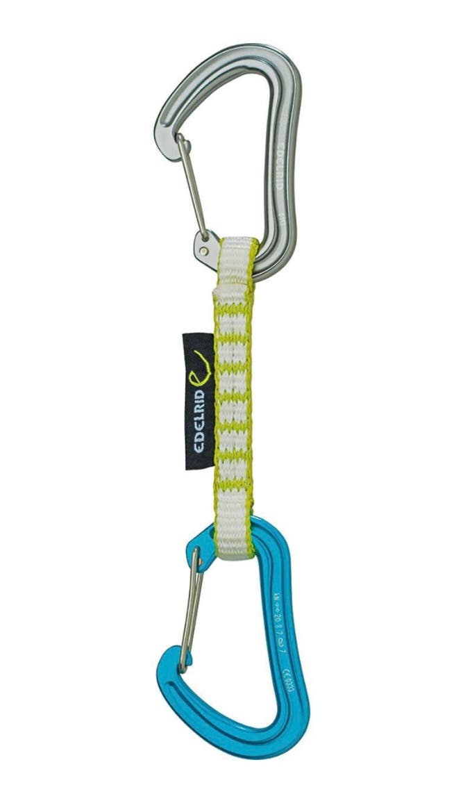 Edelrid boasts that the Nineteen G Carabiner is “quite possibly the lightest carabiner in the vertical world.” A tall claim indeed, but considering that the Nineteen G Set Quickdraw has a total weight of just 1.6oz, they may be right. This feather-weight quickdraw had a tough dyneema dogbone and a carabiner stabilizer on the rope clipping side for quick clips.