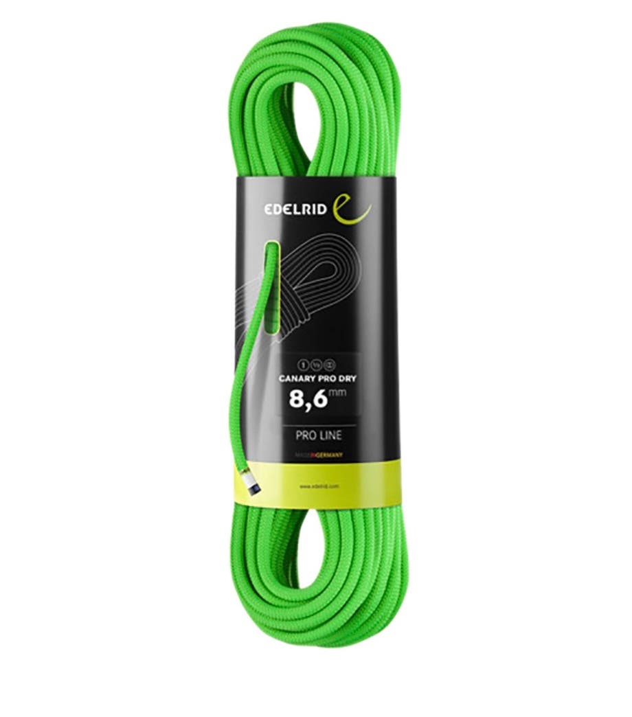 This is Edelrid’s skinniest climbing rope, certified as a single, half, and twin. It is an ideal cord for big days in the hills when you’ve got a lot of walking to and from the climbing—this thing is feathery light compared to thicker climbing ropes. It also has a Pro Dry treatment to protect it from water, dirt, and abrasion.