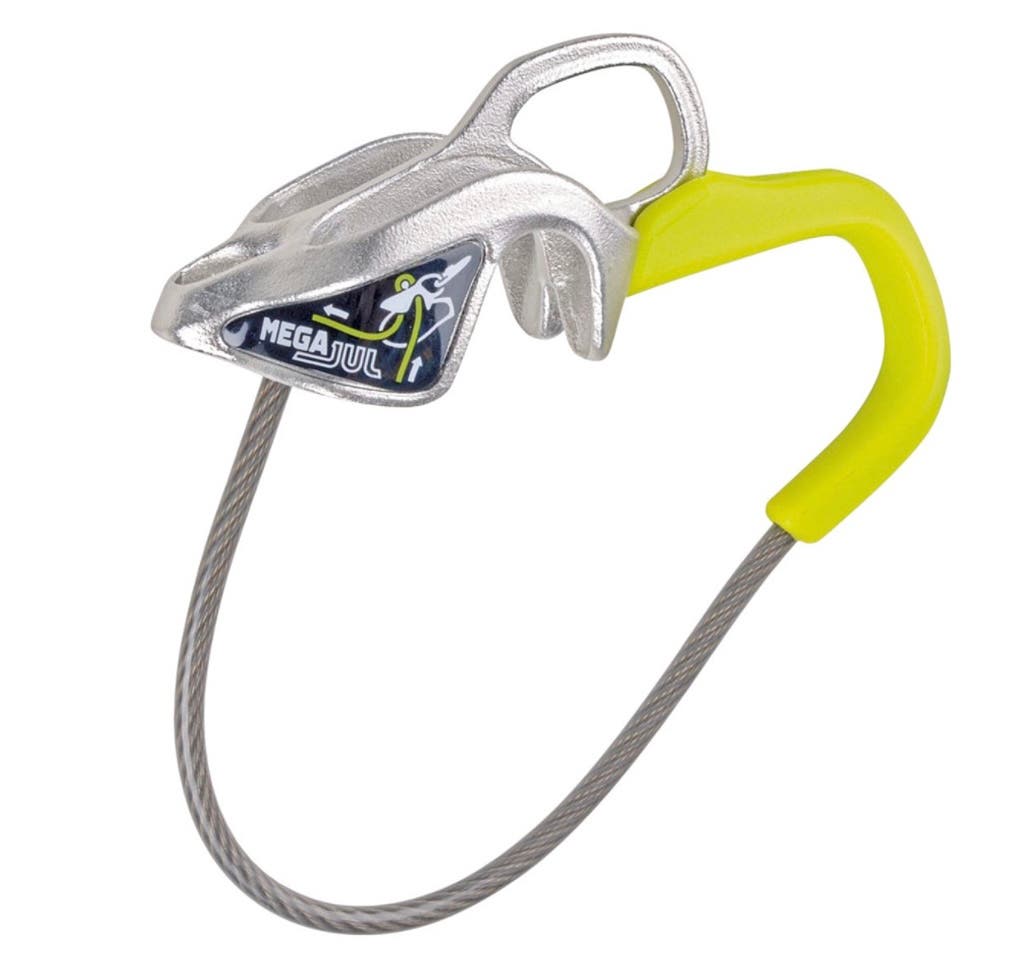 For such a small belay device, the Mega Jul packs a punch. It is a stainless steel assisted braking tube style device. The assisted braking feature gives you and your climber a little extra peace of mind while leading, but this device can also attach directly to the anchor in guide mode and has assisted braking on rappels.