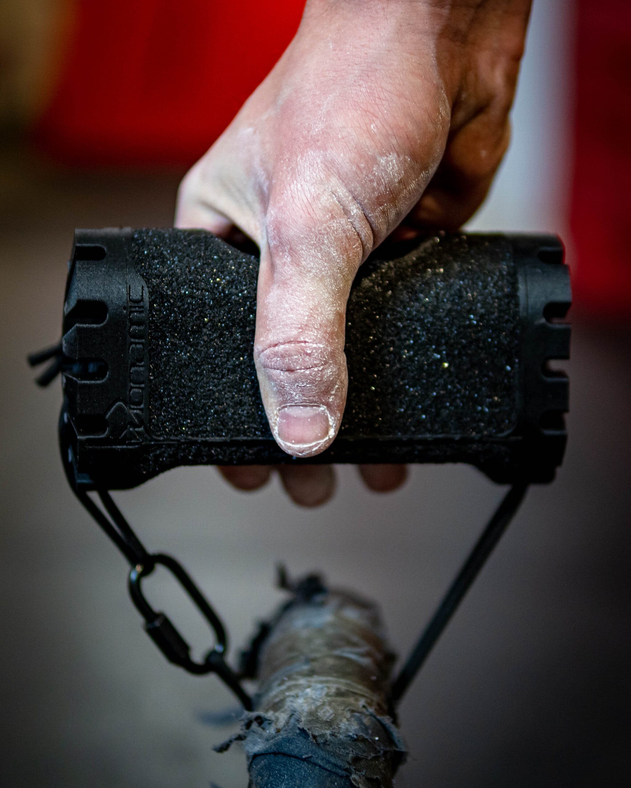 The Duonamic Eleviia ($129) is a pull-up and suspension solution for at home or on-the-go training. The unit’s C-clamp construction accommodates just about any width door frame, giving it an advantage over most home pull-up bars and hangboard rigs. As long as you have a doorframe with some type of trim or lip, you’re all set. The Eleviia comes assembled with stock pull-up handles, and is carry-on friendly. I took the Eleviia everywhere with me including on a business trip to New York City where I didn’t have enough time to go to the gym. I mounted the Eleviia in my hotel room. Not to worry, the clamps that pinch the top of the door frame don’t scratch or damage the wall paint or door frame. I did a full workout right in my hotel room and even hangboarded using the optional Powrholds ($99), a pair of grit textured holds with adjustable crimp depth and, because the holds can rotate, can turn into slopers, full-hand jugs and pinch grips. The holds do have an aggressive texture, a cause of caution if you have thin skin.