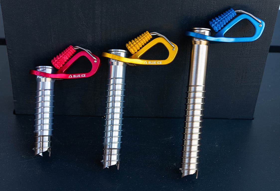 Featuring a three-tooth tip design, the Aero comes in at 90 grams for a 13cm steel ice screw, making it the lightest steel screw on the market. Thin walls shaved weight from the traditional steel screw design, while its large diameter allows it to be used to rebore existing holes. Once only a custom-made piece for sponsored athletes and a few folks with access to a machine shop, the Aero also offers ice specialists a 7cm version for desperately thin ice. A folding wiregate-like handle is low bulk, but allows for quick starts into the ice and low-profile racking.