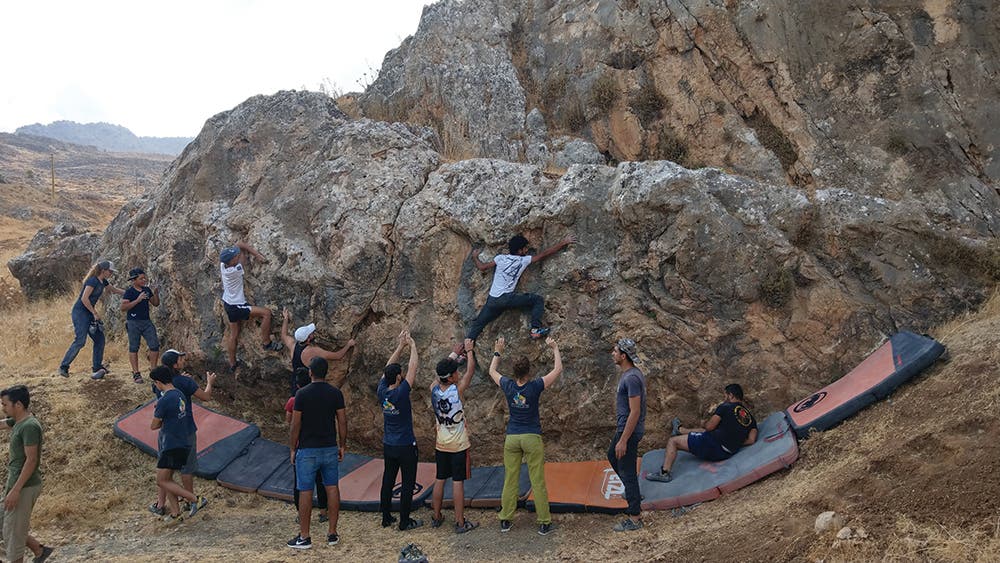 ClimbAID, a Swiss non-profit organization founded in 2016 to bring climbing to vulnerable youth worldwide, has since been roaming Lebanese streets by way of a VW van. The van, dubbed the “Rolling Rock,” is refurbished with colorful climbing walls, holds and volumes, and houses sets of padding, shoes and chalk. The Rolling Rock travels the Beqaa Valley of Lebanon to give refugee children the opportunity to climb, slackline and learn about the environment.