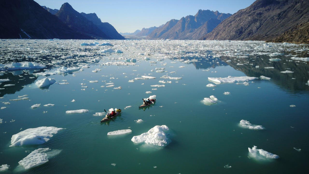 The team left the northern coast of France in early July, arriving in Greenland after a stormy two-week stint on the 79-foot Kamak. Once their captain could take them no further, they used inflatable kayaks to travel along the coast and into the fjords.