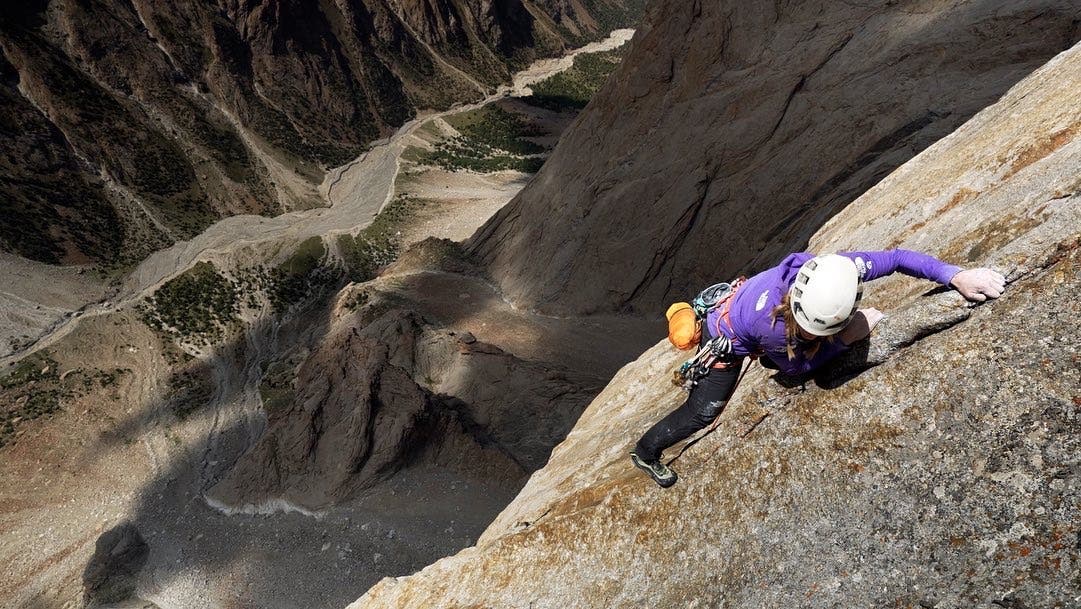 On July 26, HBO released the third episode of its Edge of the Earth series, in which pro climbers Emily Harrington and Adrian Ballinger battle up the northwest face of Pik Slesova, also known as the Russian Tower. They’re trying to send The American Way (5.13a 950m, VI), which was freed in 2019 by David Allfrey, Brent Barghahn, Nick Berry, and Eric Bissell. Harrington and Ballinger each planned to claim individual first free ascents, but (as you can see in the well-produced hour-long episode) there were challenges. And then a weeks-long online debate about big wall ethics followed. Things got heated.