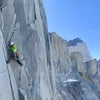 The first day on the wall the team climbed the entirety of the East Pillar. Day two they spent resting and waiting for the headwall to clean, and bumped up their camp 100 meters. On the third day, the team linked into the already established Titanic headwall and pushed for the summit. The climbing on the Titanic follows a 5.11 crack system, but it was iced over and difficult to climb—they freed almost everything with a few sections of aid. The crux pitch is a flake traverse, which required a pendulum swing into a ramp system.