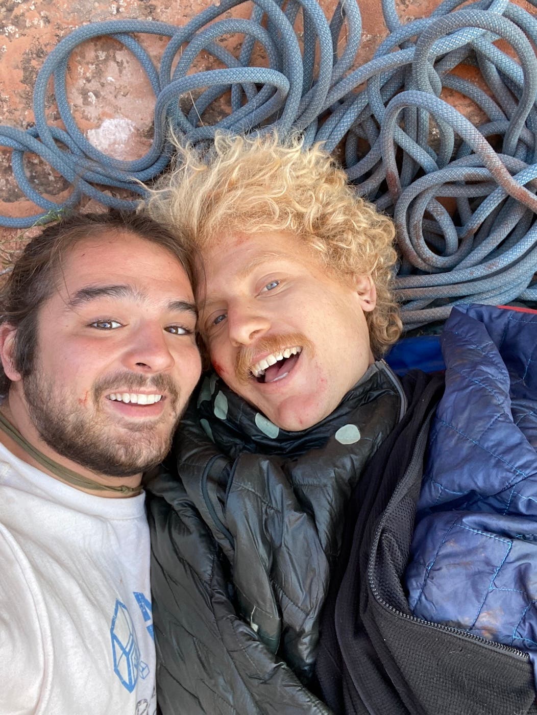 The impact broke his pelvis, five ribs, collar bone, and scapula. At some point during the fall his right arm was also torn almost entirely off, “hanging by a bit of soft tissue,” DeMuro said. “I’m not sure if his hand met the business end of that boulder, it looked like it did. But maybe his hand just broke his fall… It all happened really fast, but it was brutal. It was gruesome.” The boulder that pulled loose exploded into multiple fragments upon hitting the slab where Snow landed.