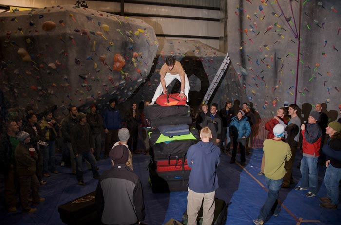 This article is from Climbing Magazine issue No. 74 – September/October 1982Scott Kimball on the first ascent on Consumption of the Ages (5.10-), at The Crags, Estes Park, Colorado. Photo by Michael Kennedy
