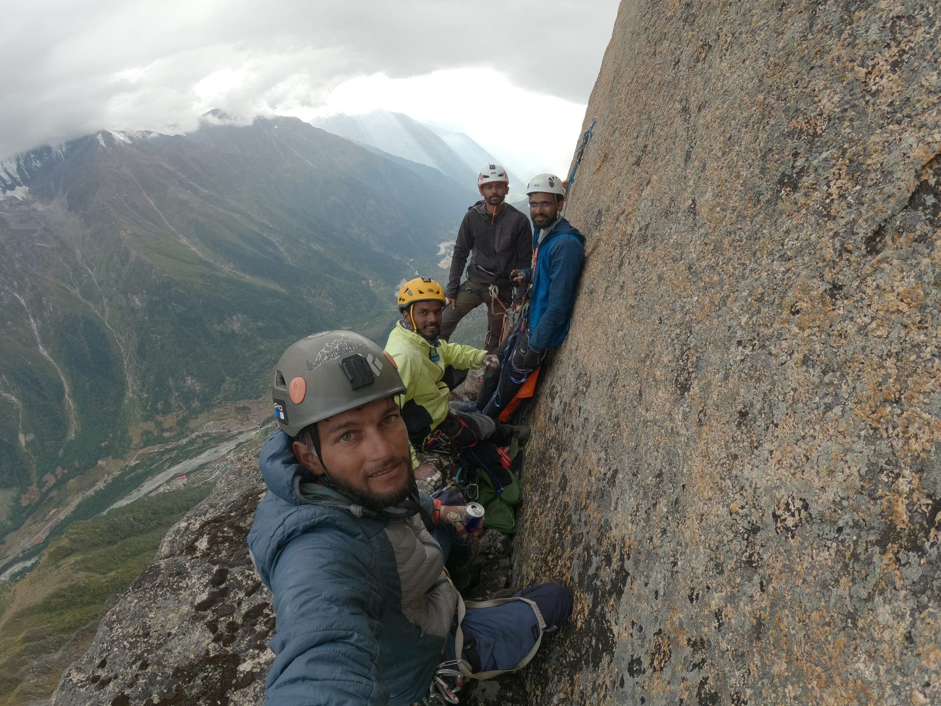 Five people is a rather large team for a big wall rock route, but the tight-knit group reported that they experienced no conflict, and possessed a strong sense of camaraderie. Aher noted that after Trishul Direct the group went to a bouldering area, and many of the Indian climbers they met were inspired by their climb. “So many Indians aspire to do [big walls] but aren’t able to [because] one of the most challenging things about a big wall is having a team,” he said. “It’s rare in India that a big team of climbers can come together so well, cooperate together. Ours is a unique combination of people that have managed to stay together without egos or any other conflict.”
