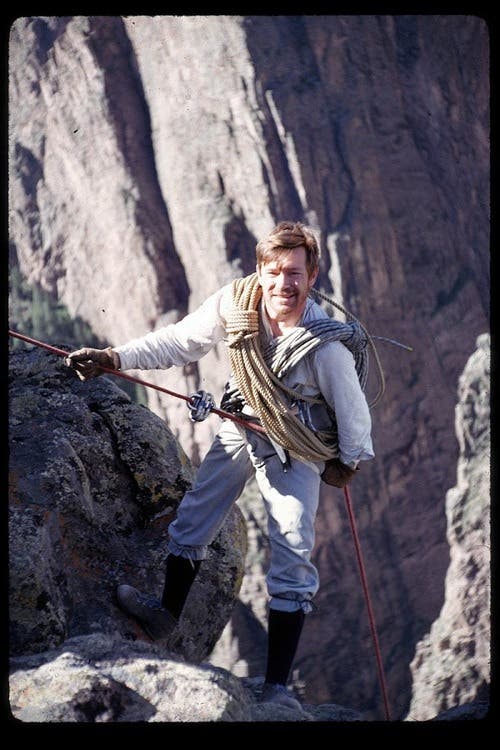 Rearick, who was born in Illinois and raised in the flatlands of Florida, didn’t taste the mountains until he was a teenager, when he attended summer camp at the YMCA of the Rockies in Estes Park. “Dave used to tell this story, about how he and a friend snuck out of the camp, and hiked to the summit of Longs via the Cables Route,” recalled longtime friend Bill Briggs. The two boys found their way back in the wee hours of the morning, after the whole camp had mobilized to search for them. But whatever punishment he received, Rearick clearly thought it was worth it. Later that summer, he snuck out again with a buddy and climbed the 1,000-foot Alexander’s Chimney (5.5), with “just a few pitons, fifty feet of rope, and a hatchet,” said Briggs.