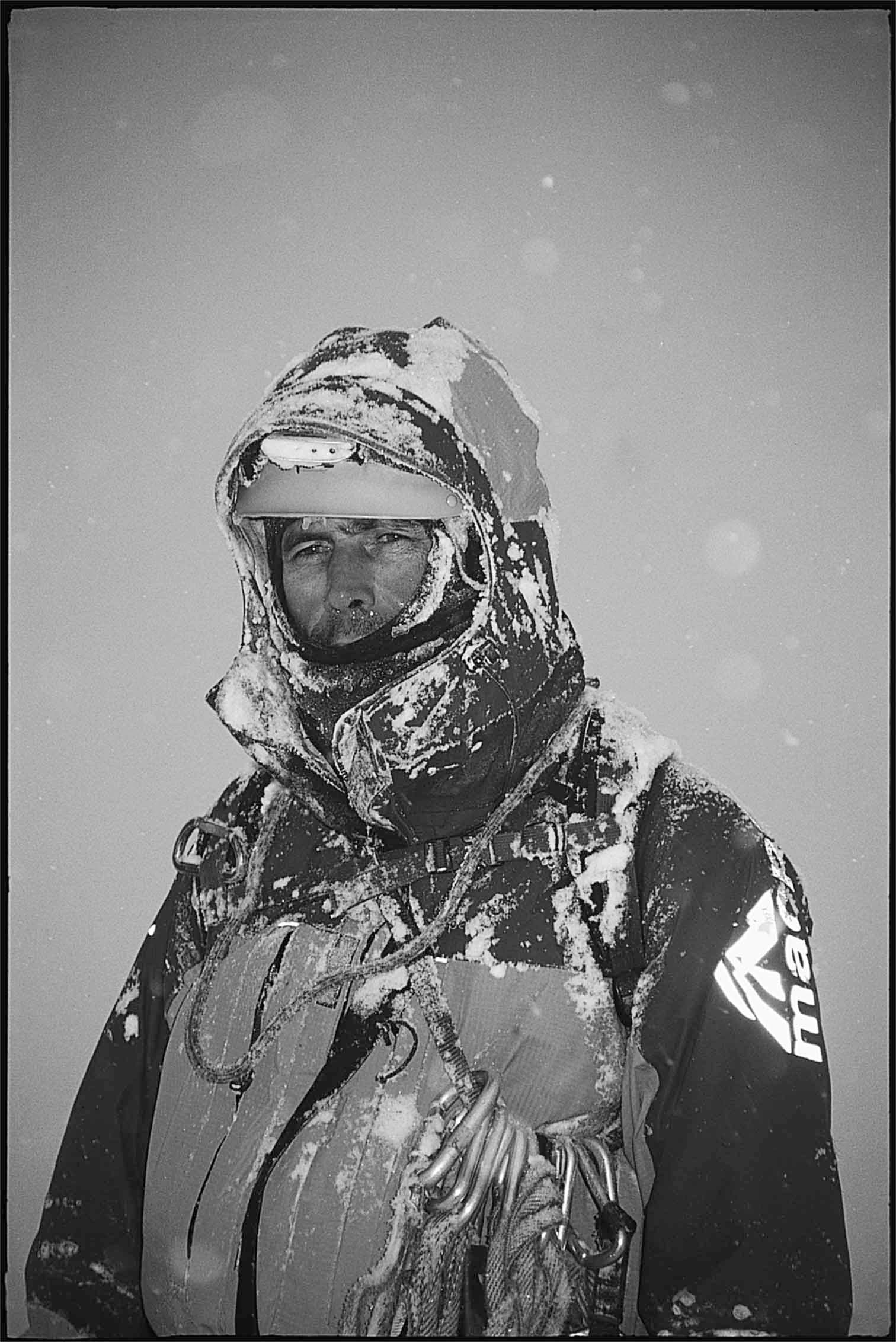 I jammed in another screw with shaking hands, and released the ropes for Marty to pull up. He abseiled to my side. This seemed to take an age, and during that time, with a torrent of snow settling on it, the slope released twice more, both times wrenching me off my feet.