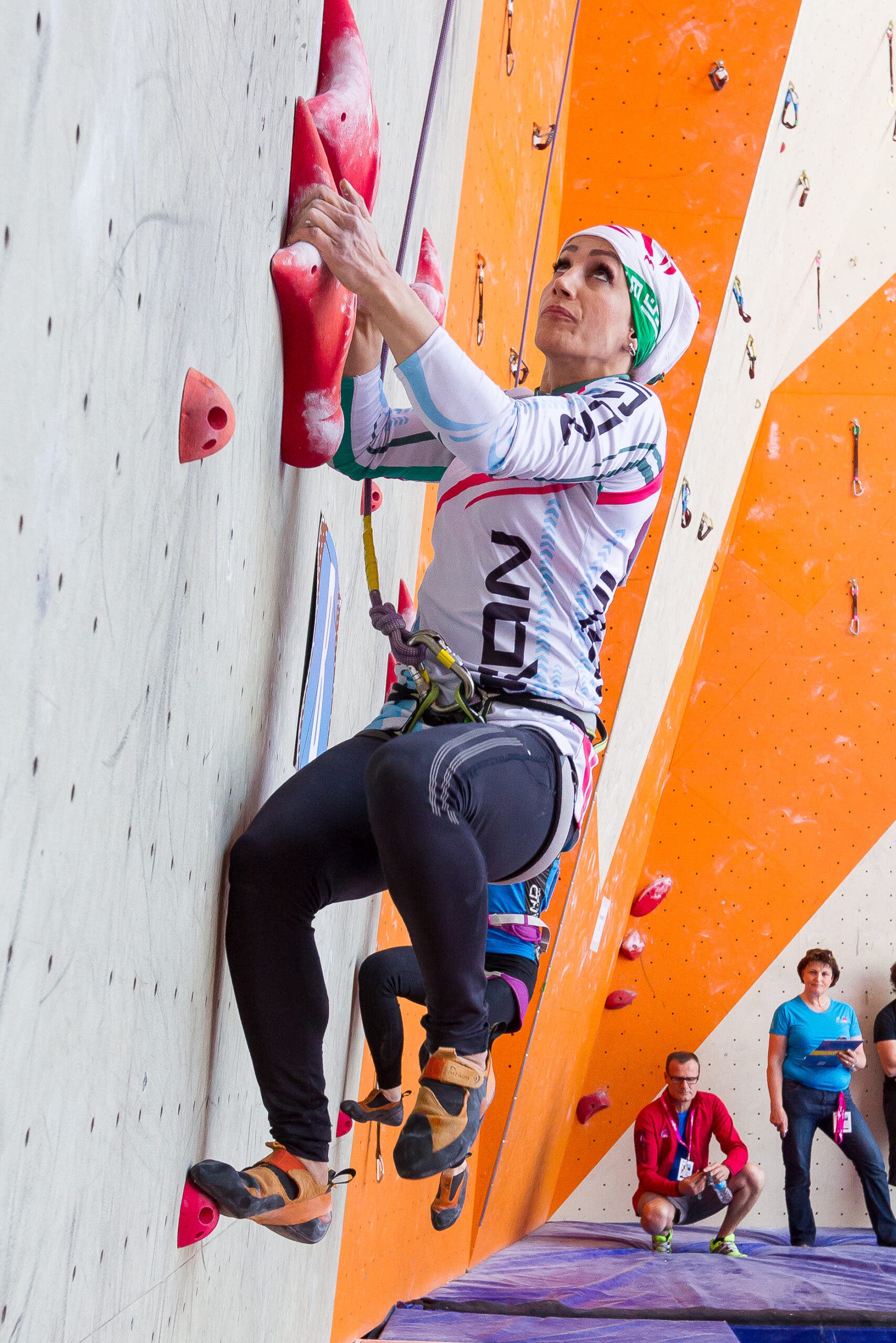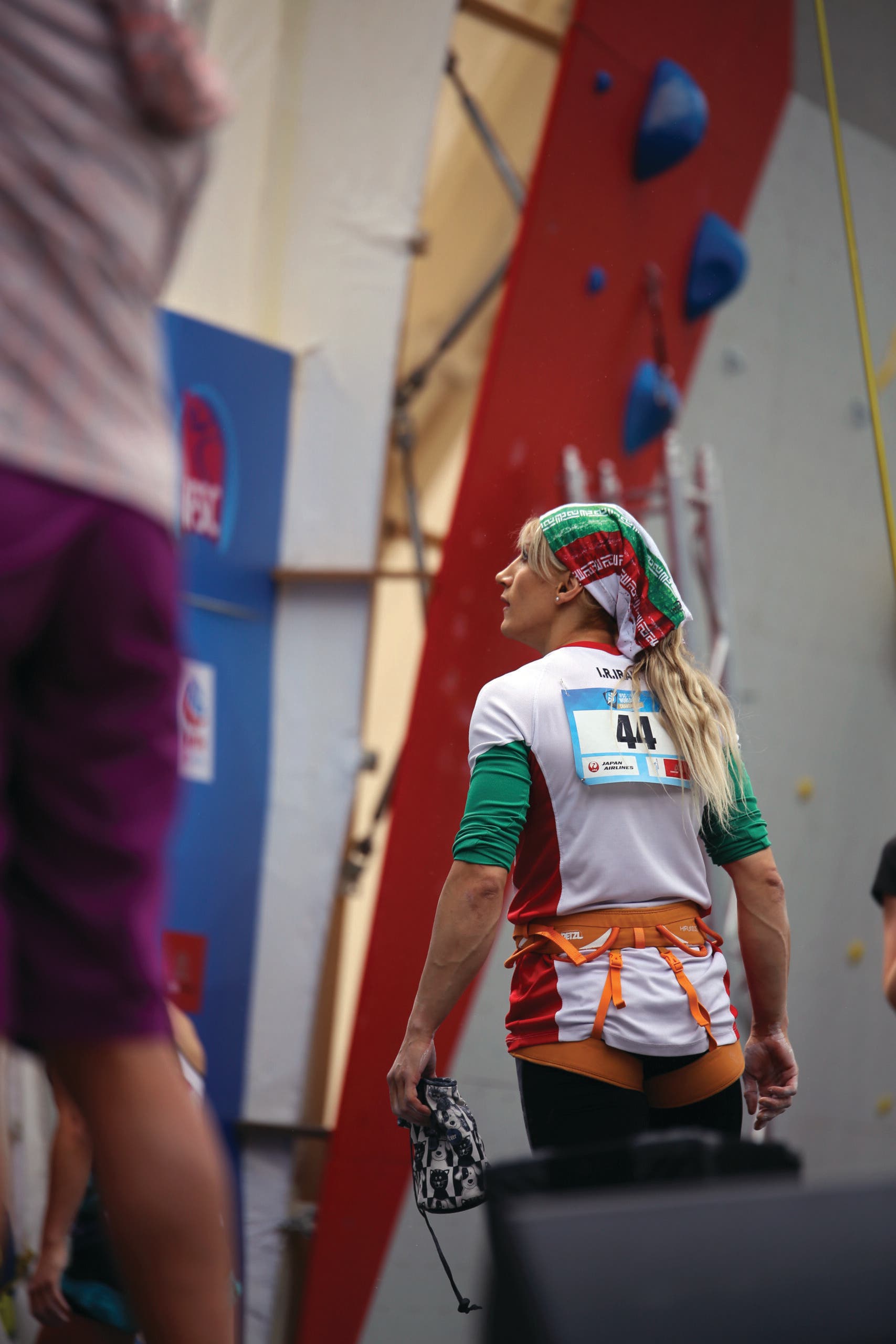 When I was 13, we moved to Zanjan, a city in northwestern Iran. Coincidentally, the same year, the 2001 Asian Junior and Youth Climbing Championships were held in the city, and my family and I went to watch. I would have loved to participate. I was on cloud nine imagining myself competing. I was inspired to take up climbing again, so I inquired around the city, and found that there were no local sport-climbing programs for girls or women.