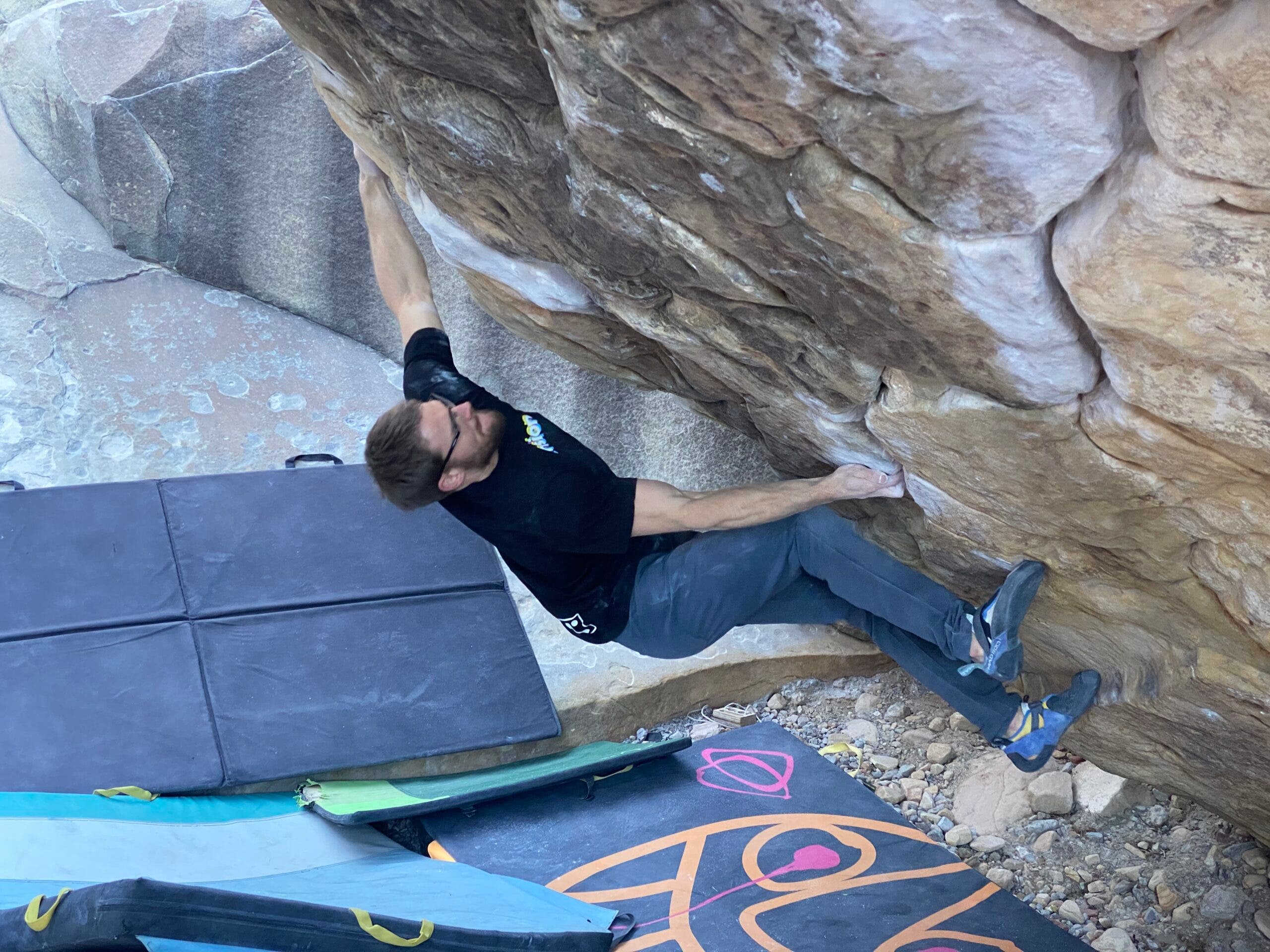 Soon after sending his multi-season project, Hypnotized Minds (V16), in Rocky Mountain National Park in September 2020, Fultz and his wife, Hailey, hit the road. In Red Rock, Nevada, last February, he had one of the most productive 24 hours of bouldering on record, sending his second V16, Sleepwalker, after numerous days of work, then putting down Squoze (V14/15) in the same afternoon and Treiste Sit (V14) the next morning. He went on to do The Nest (V15) later that week. (Fultz recently released a short film about his time at Red Rock, which you can find below.)