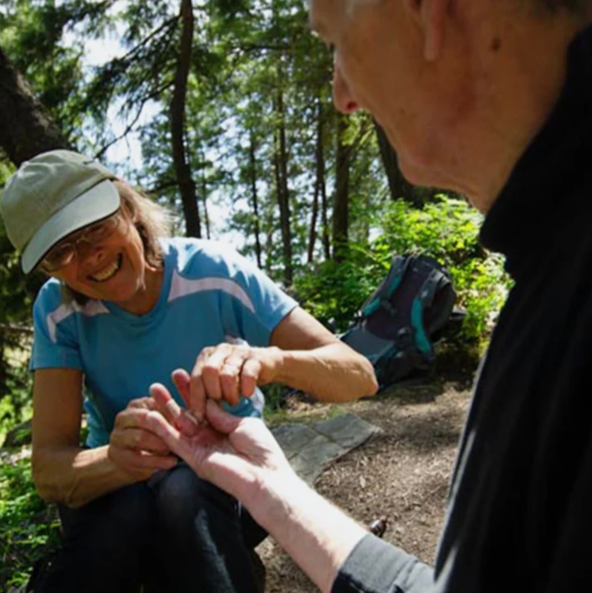 Debbie Gale climbed regularly as a young woman in her 20s, before having two kids with her husband, John, and then started back up again in her early 70s. Debbie credits her crew, which she describes as very encouraging, for reigniting her passion for the sport. She was surprised to discover how hard it was to overcome the cognitive dissonance between climbing as she remembered it, and climbing in a body that’s taken more than 70 laps around the sun. “I haven’t got the balance that I used to, I haven’t got the flexibility, and most of all I haven’t got the strength,” she says.