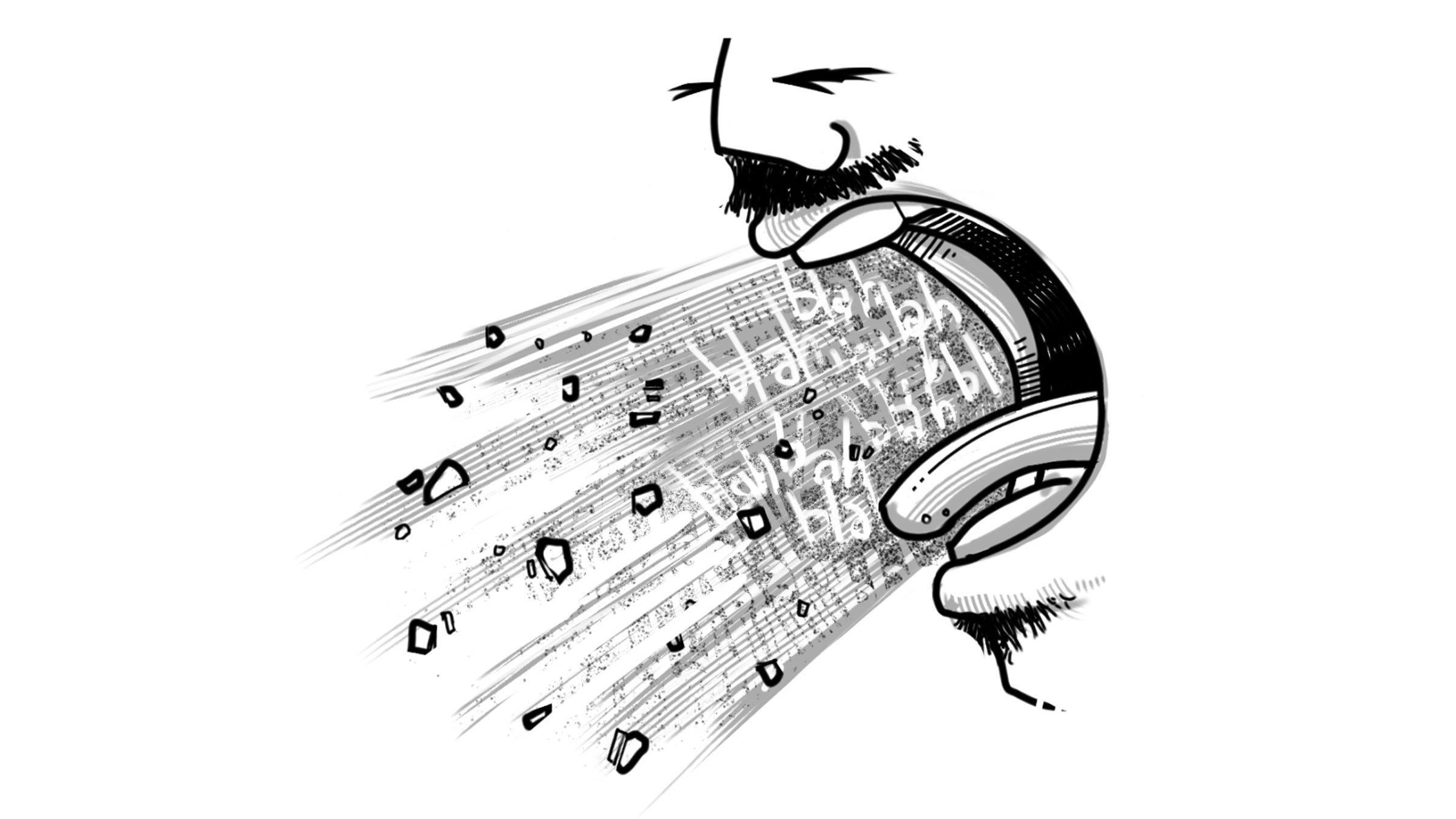 “I can’t focus,” I said, pissed, demoralized, over it after three hours of this senseless din, raising my voice loud enough (I hoped!) to be heard.