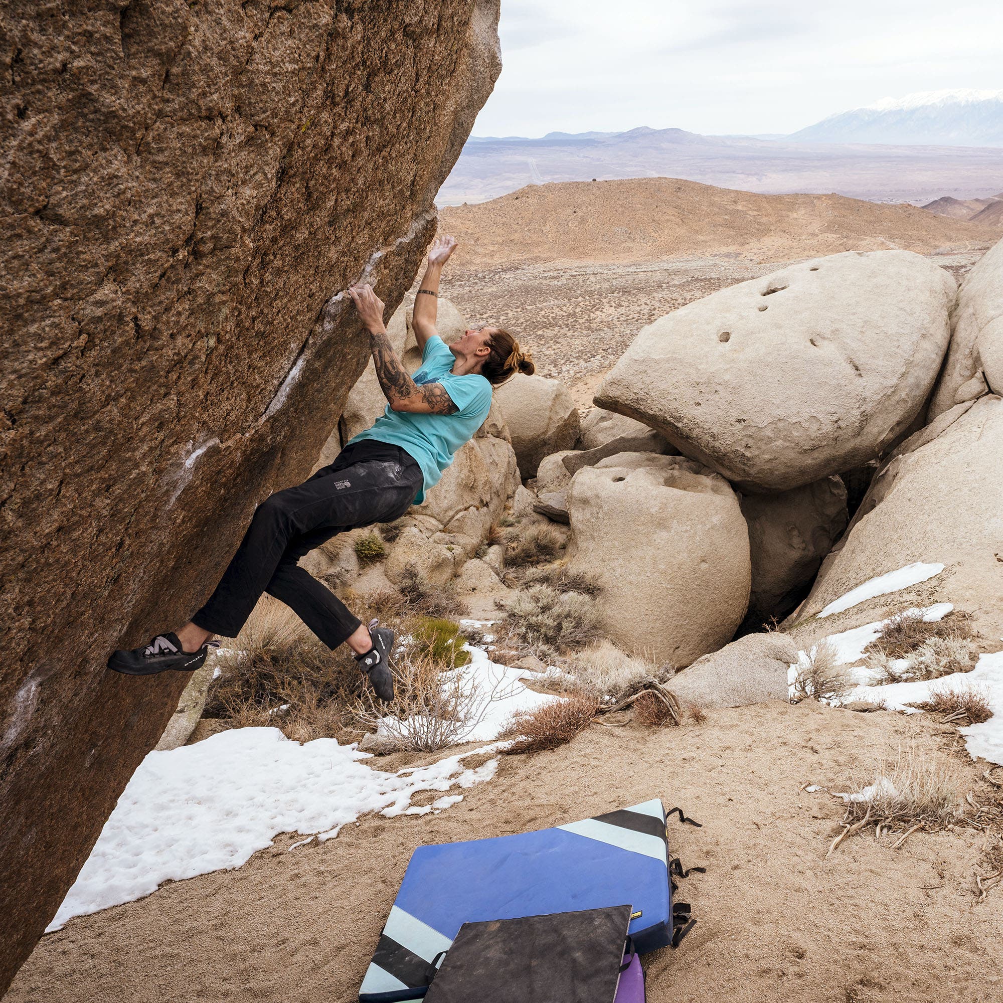 Leaving Europe, I landed Stateside and took a few days at home in Wisconsin with my family working to insulate my tiny 12-foot travel camper—my home in Bishop for the next several months. My brother and I hit the road for the 26-hour journey West. On the drive out I made a subtle post on my Instagram that I might be trying the climb. I didn’t say, “I’m going to try The Swarm, for serious.” I just put out a photo of the boulder, and a caption that began with the John Muir quote, “And I must go…” and closed with “sights set high. Bring it on.” I was apprehensive about going public because it was so uncommon. Most climbers will only talk about a climb after they’ve completed it. Yet at the same time I wanted to tell the story of what it was truly like projecting at your limit. So often all we see is the victory celebration, yet I find the blood, the grit, the screams of effort along the way far more interesting. Of course, there was the chance I wouldn’t be able to finish it, would fail and be embarrassed. In the end, I decided to go for it, and the catchy hashtag #SiegingTheSwarm popped into my head one day, so that’s what stuck.