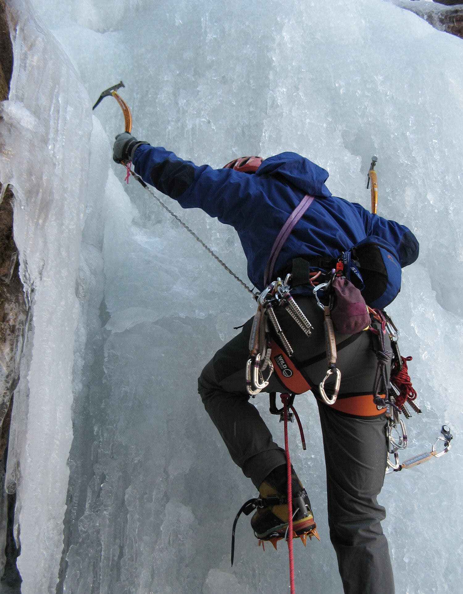 The left tool pulled the entire ice sheet off the rock, and the hammer side of the tool popped me in the mouth, like Edward Norton punching himself in David Fincher’s Fight Club. One of my incisors broke off and punctured my lip, but more importantly, I knocked myself off the climb. My feet were good, so this must have been a hammer blow of some force. I free-fell backward about ten or twelve feet, catching my right crampon on the ice and partially tearing the connective tissues in my ankle. I was wearing boots with a flexible upper, befitting mixed climbing. My leg may have broken with a stiff boot.