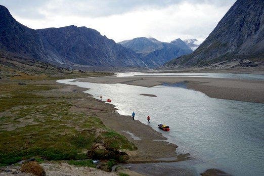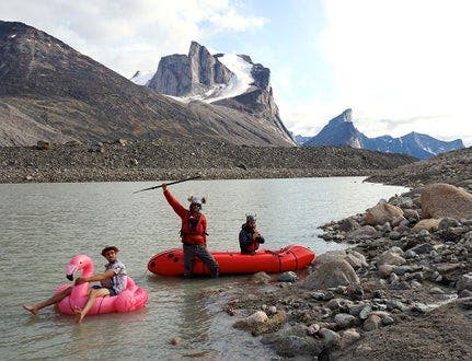 A week earlier, Bronwyn Hodgins, Thor Stewart, Zack Goldberg Poch and I had put into the Arctic Ocean and paddled our way up the Pangnirtung fjord, riding the tide towards the mountains. From the mouth of the Weasel River we started dragging upstream, taking turns wading through knee deep water with our packrafts tied to ropes around our waists. Finally, once the Weasel became too fast flowing to wade up, we deflated our boats and hiked with heavy loads for 3 days through a raging storm towards our cache at Summit Lake. Here we were grateful to find our climbing gear, food and fuel, which had been stashed by Peter Kilabuk, our local outfitter, via snowmobile four months earlier.