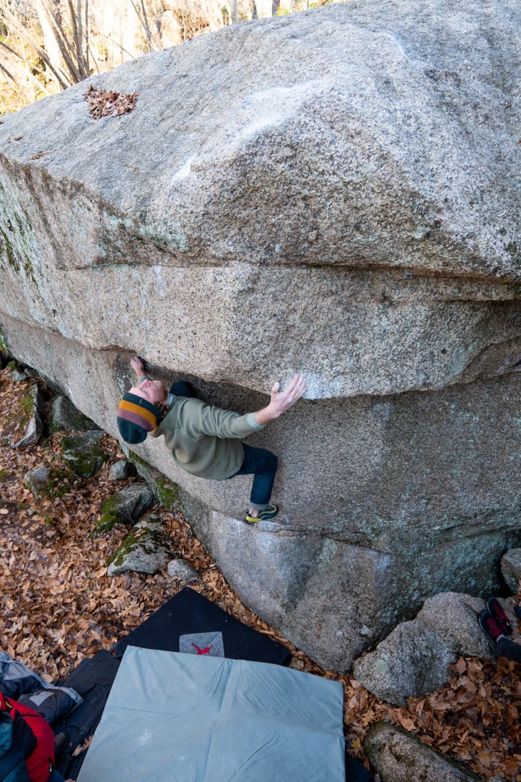Like any problem that has a lot of slopers or large, open-hand holds, conditions are crucial to sending. Wait for cool, crisp, dry days to maximize friction for both your hands and your feet. If you’re sliming off during any given session, save your strength for another day with better weather.