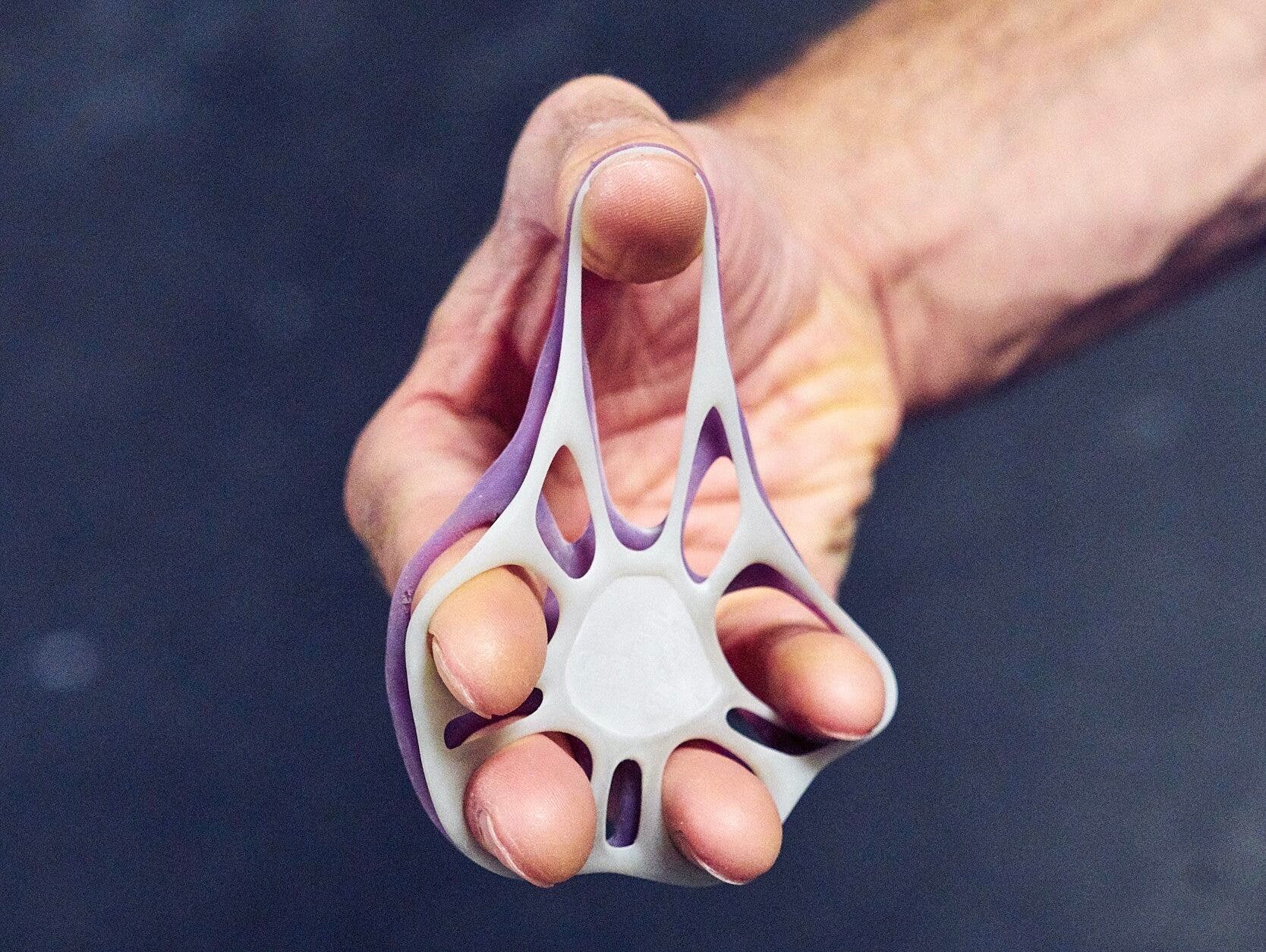 Rubber forearm extensor trainers are crucial for preventing the common climbing injuries associated with muscular imbalances in the forearm, such as elbow tendinitis. When it comes to the practicalities of using them, the main issue is that you can never seem to find them when you have a free moment to use them. Put the trainers in the pockets of your gym bag or work bag or in a place where you can always find them (bedside table, with your keys etc). Do three sets of 15 to 20 reps, to 80 percent effort level, three times a week and they will help keep your forearms healthy and robust, as well as facilitating further strengthening of your fingers.
