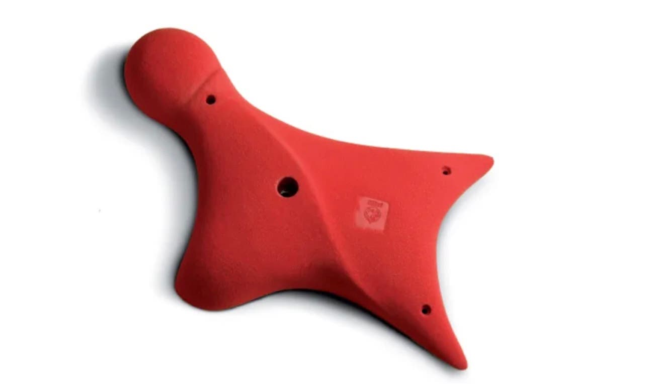 The wall itself is 15 meters, or about 50 feet, and sits at a 5-degree overhang. There are 20 handholds and 11 feet. There is no official grade for the speed route. While many speculative grades float around the Internet, it’s hard to nail down a specific number because speed climbing bears little resemblance to sport climbing. All the hands use one standardized hold (above), which includes a jug, punch, and slopers depending on where it’s grabbed. It’s safe to say that you can climb the route if you can climb 5.11. The challenge in speed climbing isn’t in climbing the route, it’s in climbing it fast.