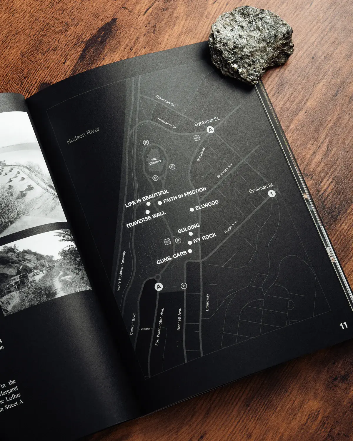 Making the book required discipline. Photos were the hardest part. “Even though Fort Tryon is scenic, New York doesn’t exactly scream natural beauty,” Riley says. “Getting the right climber on the right boulder in the right light was rare, but necessary: “I wanted the photos to be impressive enough that even climbers from the most incredible places would want to visit.”