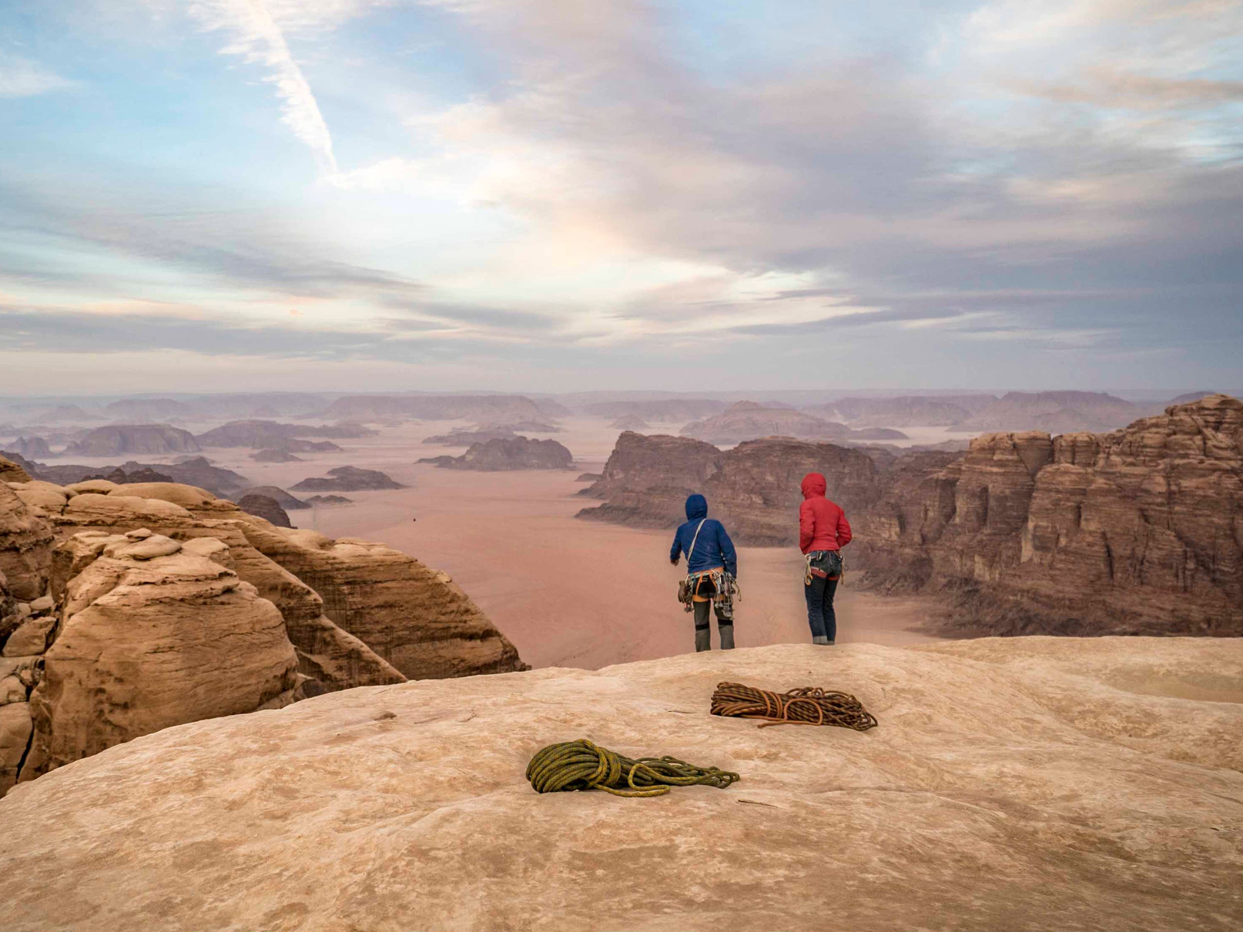 Meanwhile, they’re cheered on by the residents of Wadi Rum, who treat the climbers to their famous Bedouin hospitality. As Madaleine finds her sequence up the crux fourth pitch (5.13+), prayer calls sound in the village below and echo throughout the mountains.